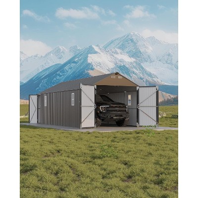 LinTimes 12x25FT Metal Carport Fully Enclosed Garage Shelter with Vertical Rain Roof All-Steel Structure Heavy Duty Garden Storage Shed