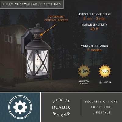 VAXCEL Henderson 1 Light Textured Black Motion Sensor Dusk to Dawn Outdoor Wall Lantern Clear Glass Shade, LED Compatible