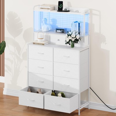 Smart Dresser with 11 Fabric Drawers, Built-in Charging Station & App-Controlled RGB Lighting - Anti-Tipping Design for Bedroom, Living Room, Closet
