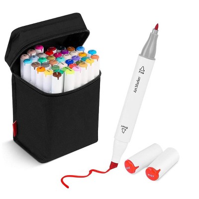 Itopfox 41 Pack Alcohol Based Dual Tip Permanent Markers Fine and Chisel for Adult Coloring Drawing Sketch Card Making Case Included