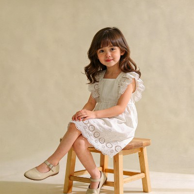 Organic Eyelet Flutter Dress - Ivory Eyelet