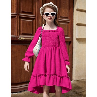 Arshiner Girls Dresses Puff Long Sleeve Fall Winter Smocked High Low Swing Midi Dress with Pockets