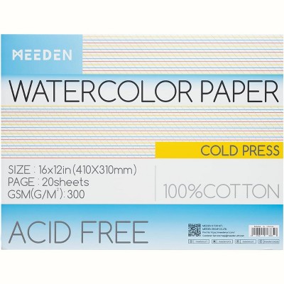MEEDEN 16x12" Cold Press Watercolor Paper Pad 20 Sheets.