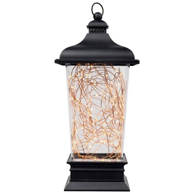 Northlight LED Lighted Tapered Christmas Lantern - 12" - Black - Clear Fairy Lights