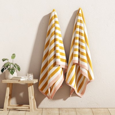 100% Cotton Stripe Border Oversized Beach Towels - Great Bay Home