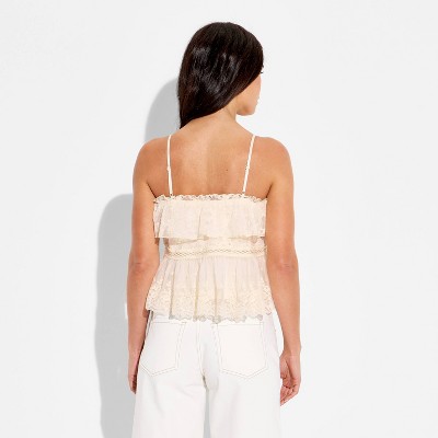 Women's Embroidered Mesh Babydoll Top - Wild Fable™