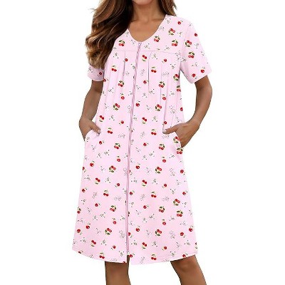 Ekouaer Women Zipper Robe 3/4 Sleeve Nightgowns Lightweight Short Bathrobe with Pockets