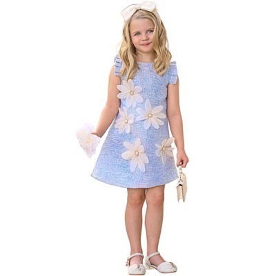 Blue Sequin Daisy Pearl-Accent Shift Dress Mia Belle Girls