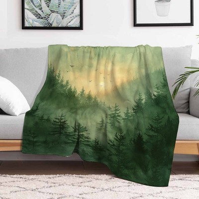 Nertpow 1PC Misty Forest Fantasy Blanket With Sunset Forest Design, Serene Landscape Design, All-Season Home Decor & Accessory.