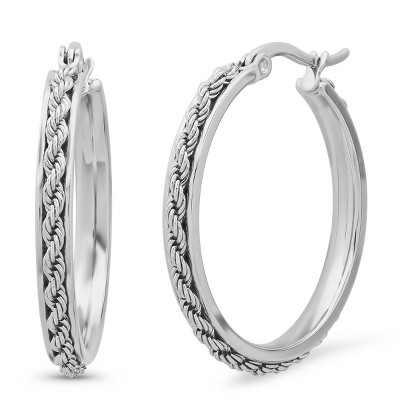 Steeltime Ladies stainless steel rope chain hoop earrings
