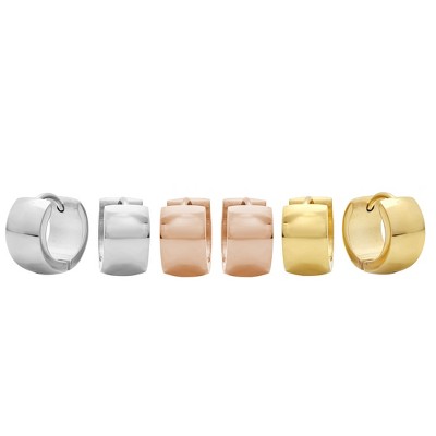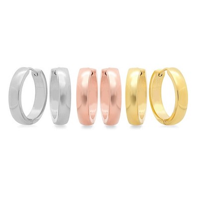 Steeltime Set of 3 Assorted Stainless Steel Hoop Earrings
