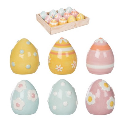 Transpac Mini Ceramic Egg Decoration Set of 12 in Crate for Easter Home Decor and Decorative Objects