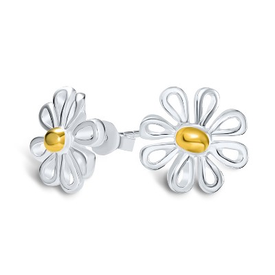 Bling Jewelry Spring Flower Daisy Stud Earring Two Tone Yellow Gold Plated .925 Sterling Silver
