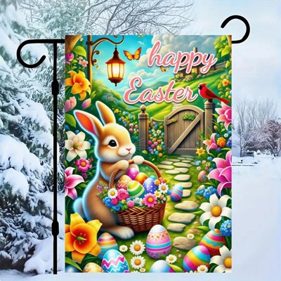 Happy Easter Garden Flag Bunny Egg Basket Flowers Design Yard Flag Spring Easter Welcome Banner for Porch Lawn Patio Seasonal Decor 12x18in