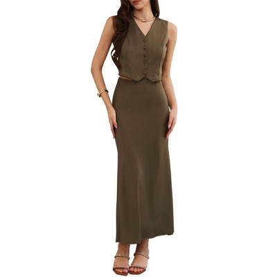 INSPIRE CHIC Women's Summer V Neck Vest Tops Sheath Maxi Skirts Dressy Outfits 2 Pieces