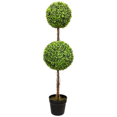 3.5ft Boxwood Double Ball Artificial Topiary Tree - Nearly Natural: UV-Resistant, Indoor/Outdoor Decor