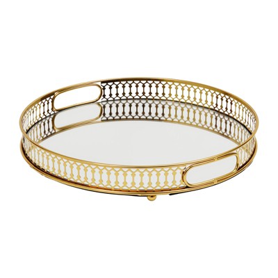 YIYIBYUS Round Tray, Gold Tray, Mirrored Decorative Tray
