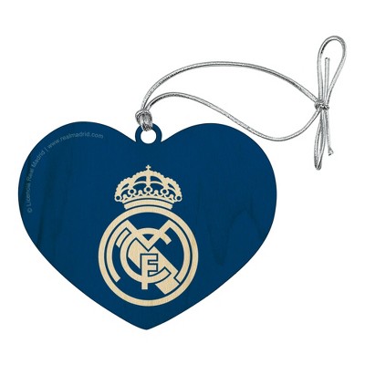 Real Madrid FC White Crest Heart Love Wood Christmas Tree Holiday Ornament