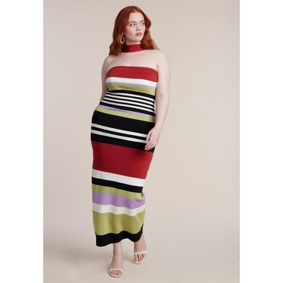 ELOQUII Long Sleeve Smocked Maxi Dress