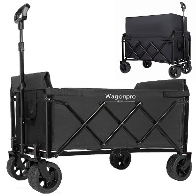 Expandable Dual-Layer Folding Wagon with 5" Wide Wheels, 220 lbs Capacity, 100% Extra Storage Space, Black