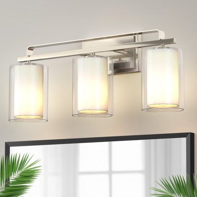 YANSUN 22 in. Brushed Nickel 3-Light Vanity Light with Clear Cylinder Glass Shade for Bathroom, Powder Room or Dressing Room