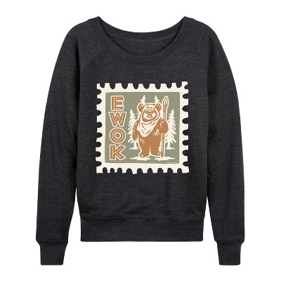 Women's - Star Wars - Ewok Stamp Lightweight French Terry Wide Neck Long Sleeve Graphic Shirt