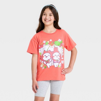 Girls' Mimi & Neko Flowers and Fruits Short Sleeve Graphic T-Shirt - Pink