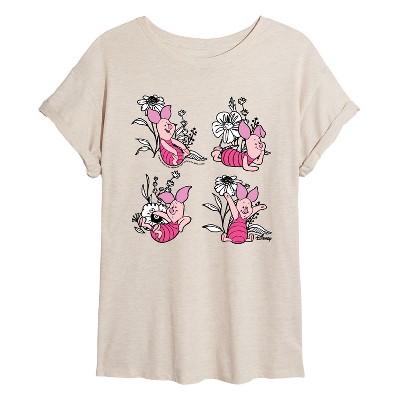 Women's - Winnie the Pooh - Piglet Flowers Oversized Graphic T-Shirt