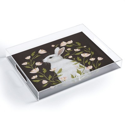 Society6 Laura Graves White Rabbit Floral Acrylic Tray