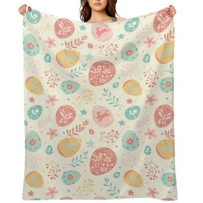 Watercolor Easter Egg Floral Throw Blanket Super Soft Lightweight Sofa Eggs Blanket for Wife Girls Blankets Spring Decor Gifts 60x80 inches
