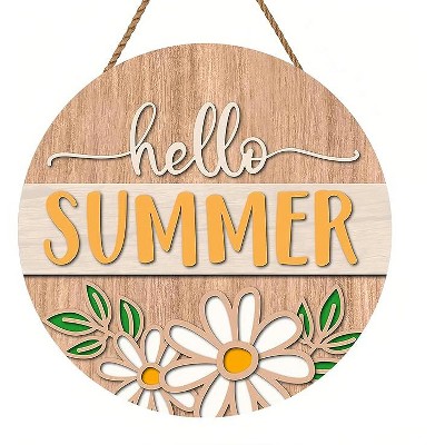 Lomsoe Hello Summer Welcome Door Sign Welcome Wooden Sign Wall Decor Summer Wall Wreath Sign Farmhouse Porch Garden Decor 8x8Inch