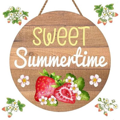 Lomsoe Sweet Summertime Wooden Front Door Sign Summer Strawberry Sign Wall Decor Summer Wall Wreath Sign Farmhouse Porch Garden Decor 8x8Inch