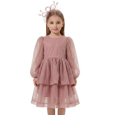 2Bunnies Girls' 12M-9Y Organza Long Sleeve Tiered Babydoll Skater Party Dress