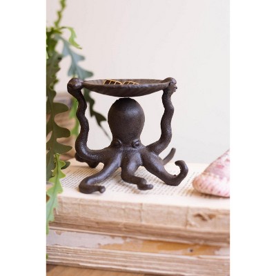 Cast Iron Octopus Shell Trinket Trays (Set of 4) 6"L Brown Matte Coastal Decor By Kalalou