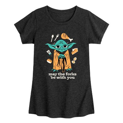 Girls' - Star Wars - May The Forks Be With You Fitted Short Sleeve Graphic T-Shirt
