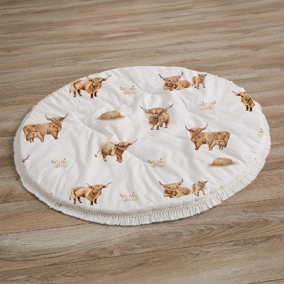 Sweet Jojo Designs Boy, Girl, Unisex/Gender Neutral Baby Tummy Time Playmat - Boho Highland Cow Brown and Taupe