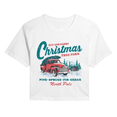 Women's - Instant Message - Cut and Carry Christmas Tree Farm Cropped Graphic T-Shirt