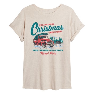 Women's - Instant Message - Cut and Carry Christmas Tree Farm Oversized Graphic T-Shirt
