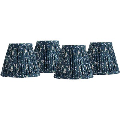 Springcrest 4" Top x 6" Bottom x 5 1/2" High x 5 1/2" Slant Print Lamp Shade Replacement Set of 6 Small Blue Empire Modern Shirred Pleated Clip On