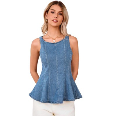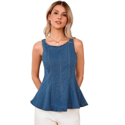 Garvee Women's Summer Denim Peplum Tank Top Stretch Sleeveless Slim Fit Jean Blouse