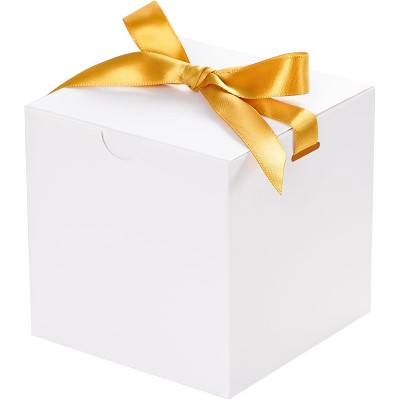 Etokfoks 50 Pack 4x4x4 Inch White Gift Boxes with Lids and Gold Ribbons Small Favor Boxes for Birthday Wedding Holiday Christmas Ornaments