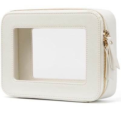 Narwey Clear Makeup Case White Toiletry Bag Travel Medium Clear Cosmetic Bag with Zipper, Small Make Up Bag