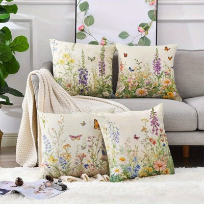 Lomsoe 4pcs Pillow Covers Featuring Wildflower Designs, Perfect for Decorating Your Living Room Sofa with 18X18 Inch.
