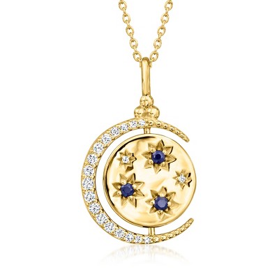 Ross-Simons Lapis, .20 ct. t.w. White Topaz and .10 ct. t.w. Sapphire Reversible Celestial Pendant Necklace in 18kt Gold Over Sterling Size 18