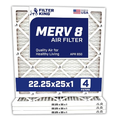 Filter King 22.25x25x1 Air Filter | 4-PACK | Carbon MERV 8 HVAC Pleated A/C Furnace Filters | MADE IN USA | Actual Size: 22.25 x 25 x .75"