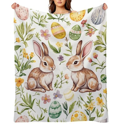 Lomsoe Easter Pattern Flannel Blanket, Soft Cozy Blanket for Couch Bed Sofa Retro Flannel Throw for Teacher Women Mothers Birthday Gifts.