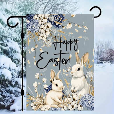 Happy Easter Floral Garden Flag Outside, Flowers Bunny Rabbit Yard Outdoor Flag 12x18in