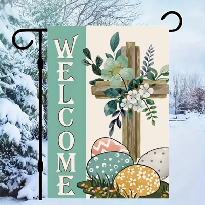 Welcome Easter Watercolor Cross Colorful Eggs Flowers Leaves Spring Garden Flag Yard Flag Yard Outside Holiday Decoration 12x18in