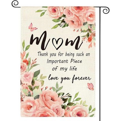 Lomsoe Happy Mother's Day Garden Flag Floral Yard Flag Welcome Yard Sign Garden Decor Mother's Day Yard Outdoor Flag from Daughter Son 12x18 Inch