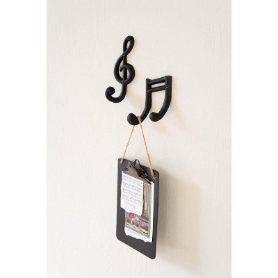 Cast Iron Musical Notes Wall Hooks 4X Set of 2 6"H – Black Matte Metal Decorative Wall Accent by Kalalou